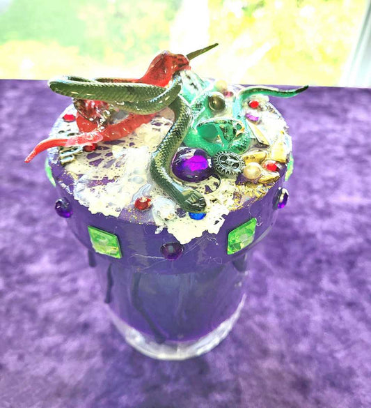 Decorated Mason Jar to fill with Your Favorite Candy, Spices, Dry Goods for Halloween or Everyday, Snakes on Wooden Lid