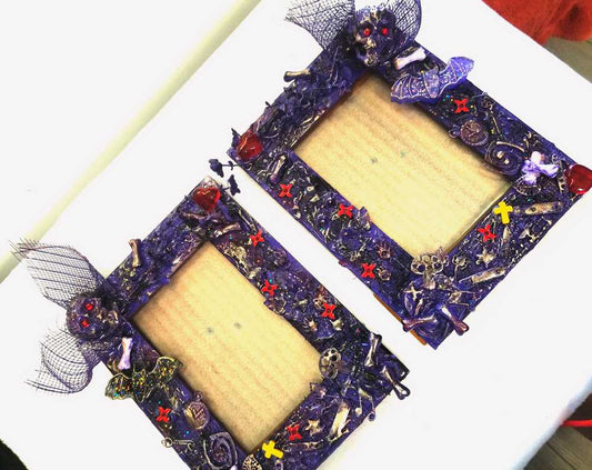 Purple Picture Frames, Holds a 4x6 Picture, Skulls, Bats, Crosses, Bones, Mushrooms & Hearts, Ready For your Favorite Picture, Glass Insert