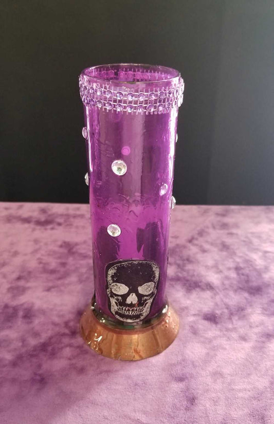 18 cm Tall Beautiful Purple Glass Flower Vase with Fabric Skulls