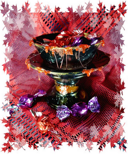 2 Altered Black Glass Candy Dish with Fake Blood
