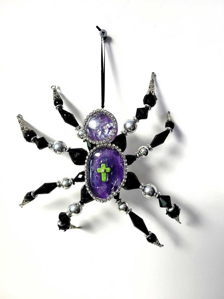 Hanging Decorated Starfish Ornament, Gemstones, Goth Decor, Beach Decoration