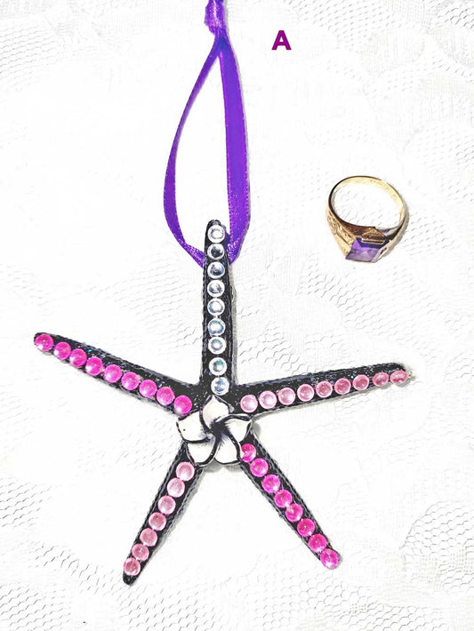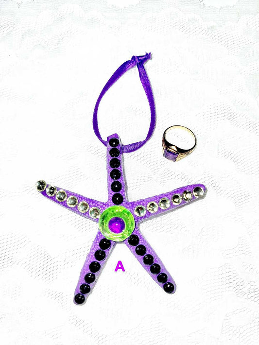 Starfish, Purple with Rhinestones and Gemstones, Seaside Ornaments, Beach Themed Decor
