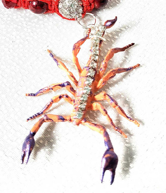 Orange Rhinestone Encrusted Scorpion Braided Bracelet for Halloween, Punk, Goth or Everyday.