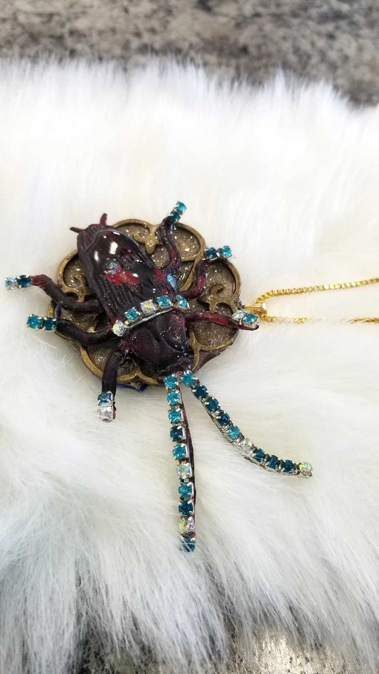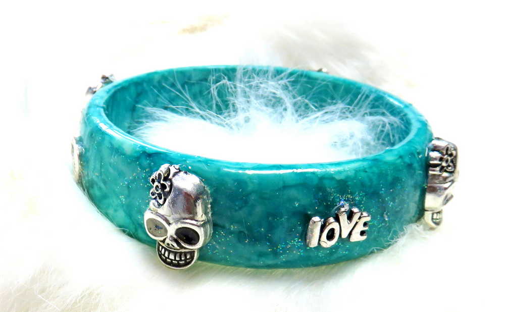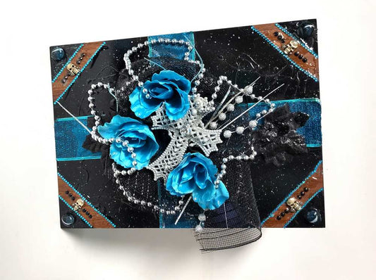 Black and Teal Jewelry Box with 3D Teal Roses, a White Cross and Skull Charms
