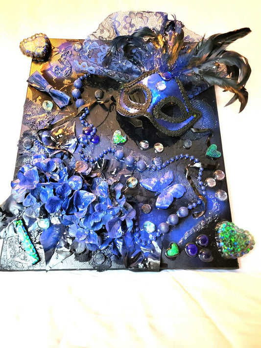 Midnight Blues, Sexy Mask on Deep Blue Canvas, 16 x 20 Inches