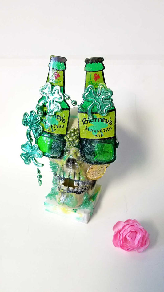 One of a Kind St. Patrick's Skull Decor, Green Beer Goggles, Missing Front Teeth and Shamrocks