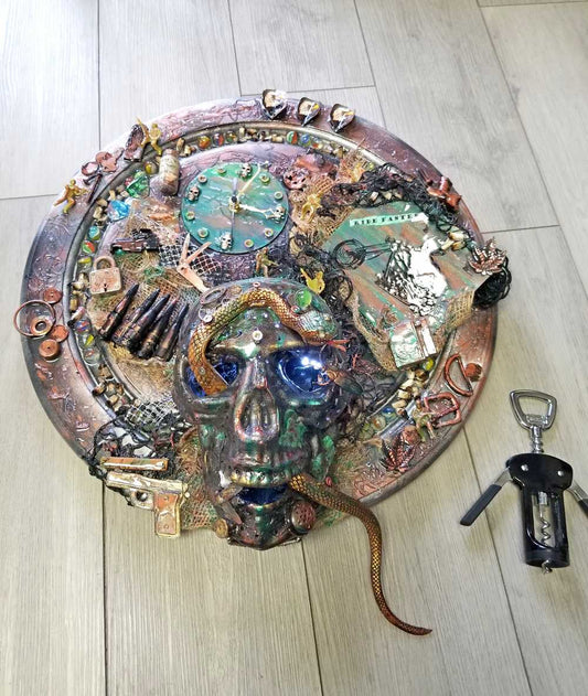 30 cm Round Lighted Skull Clock with Snake Withering Through its Mouth