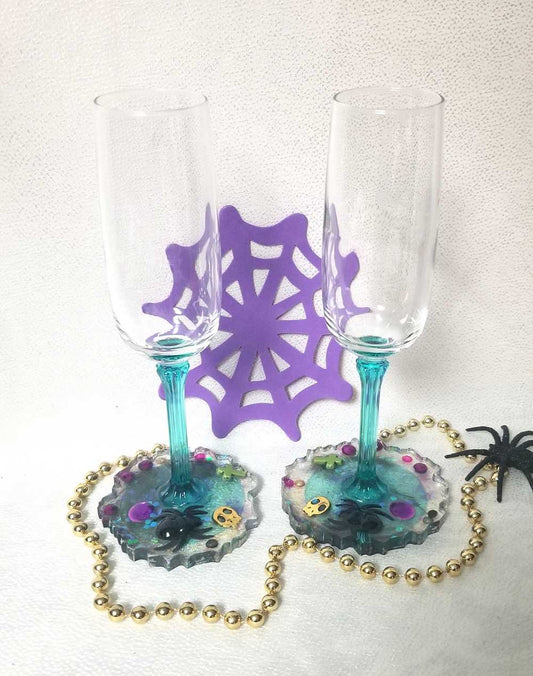 Altered Wine Glass with a Witch Hat and a Spider on a Resin Base