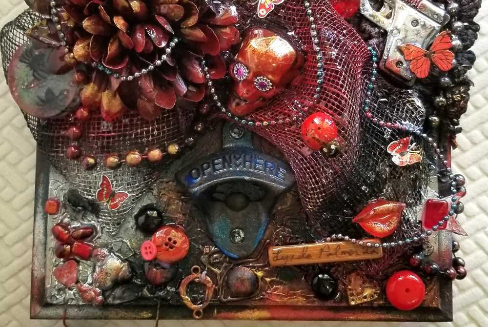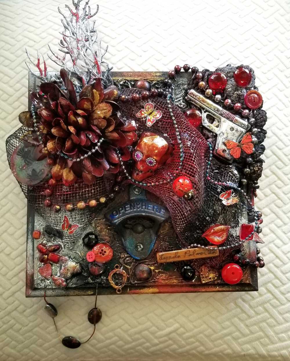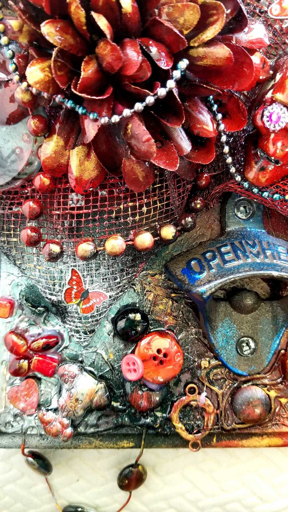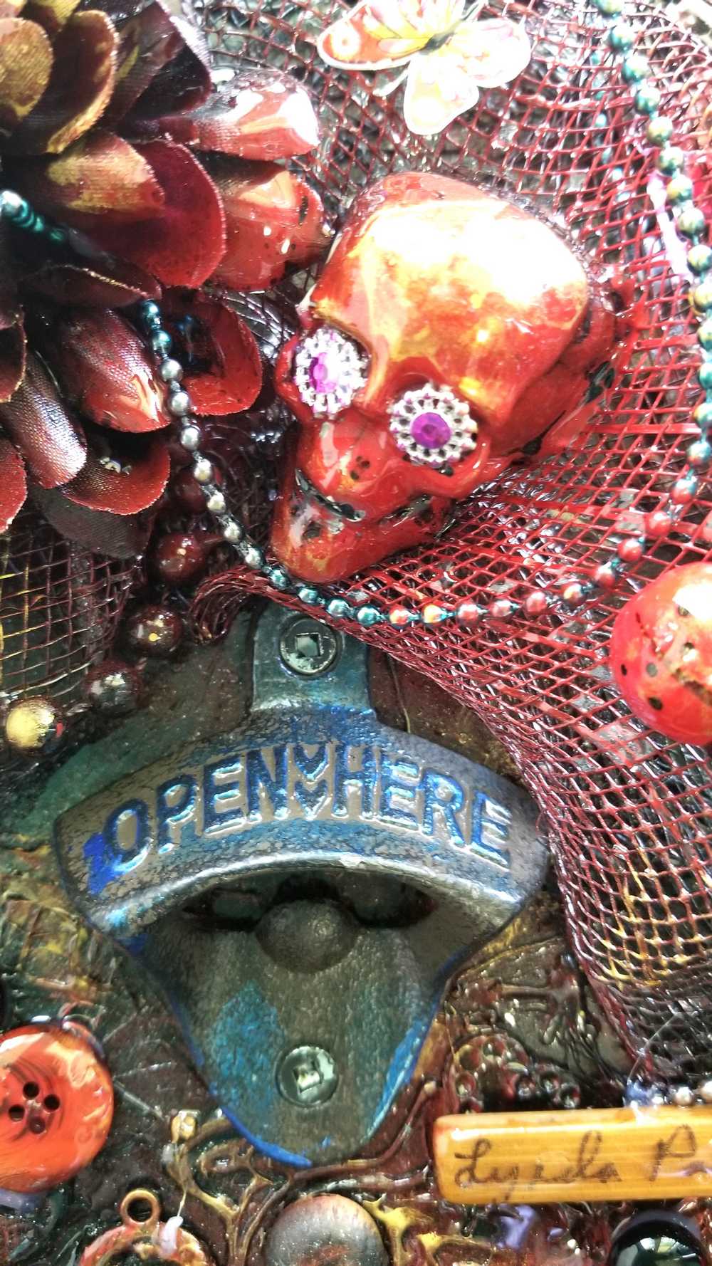 Decorative Bottle Opener Turned into Art with Flowers and a Skull, Functional Art