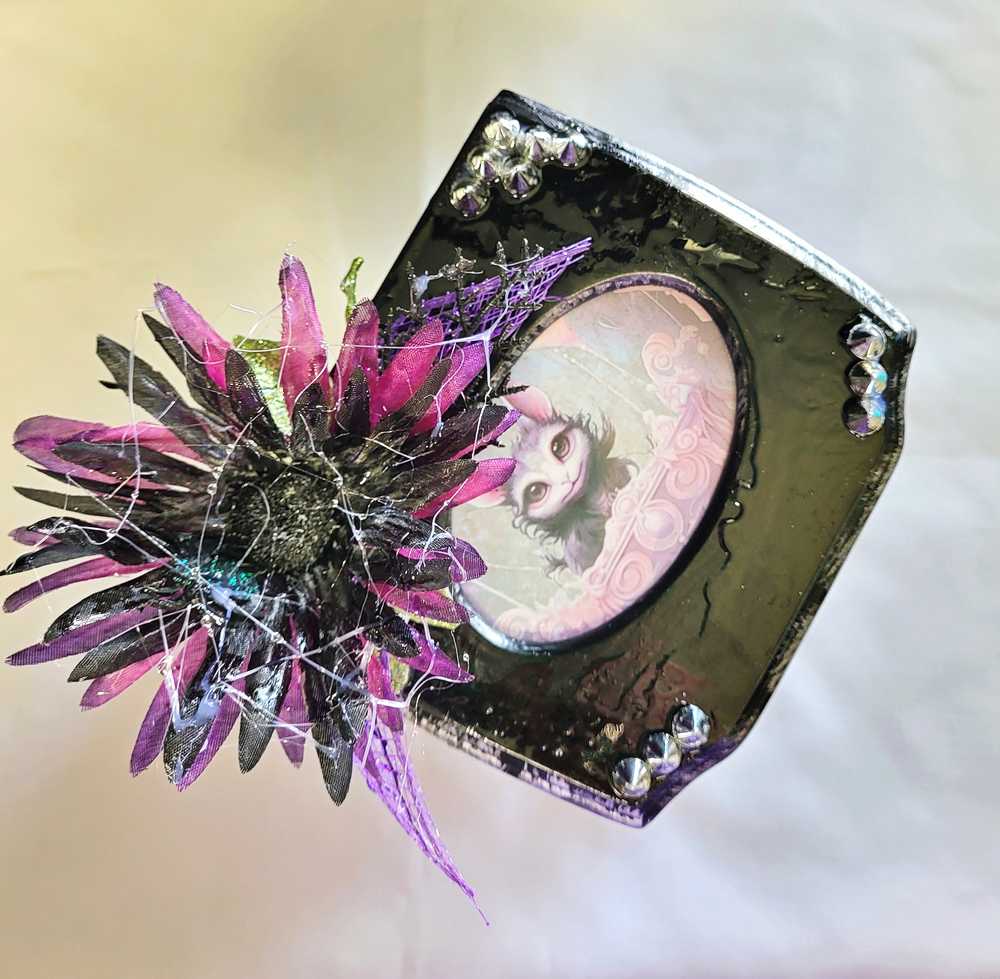 Vibrant Purple Glass Vase Fabric Skulls & Rhinestones