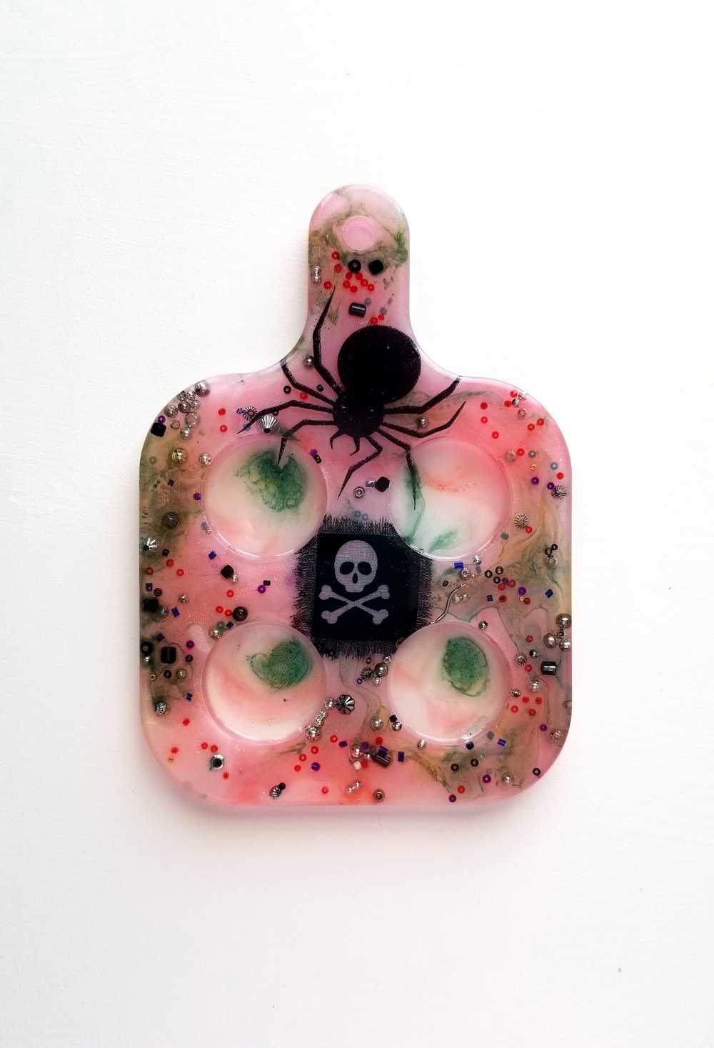 Vibrant Purple Glass Vase Fabric Skulls & Rhinestones