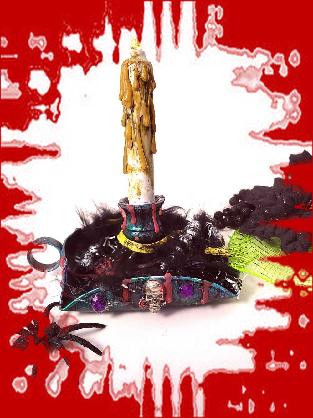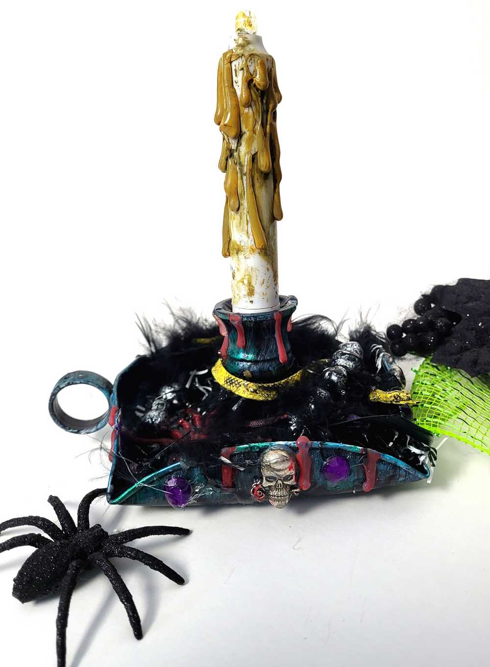 Skull and Spider Battery Candle Holder with Finger Hold