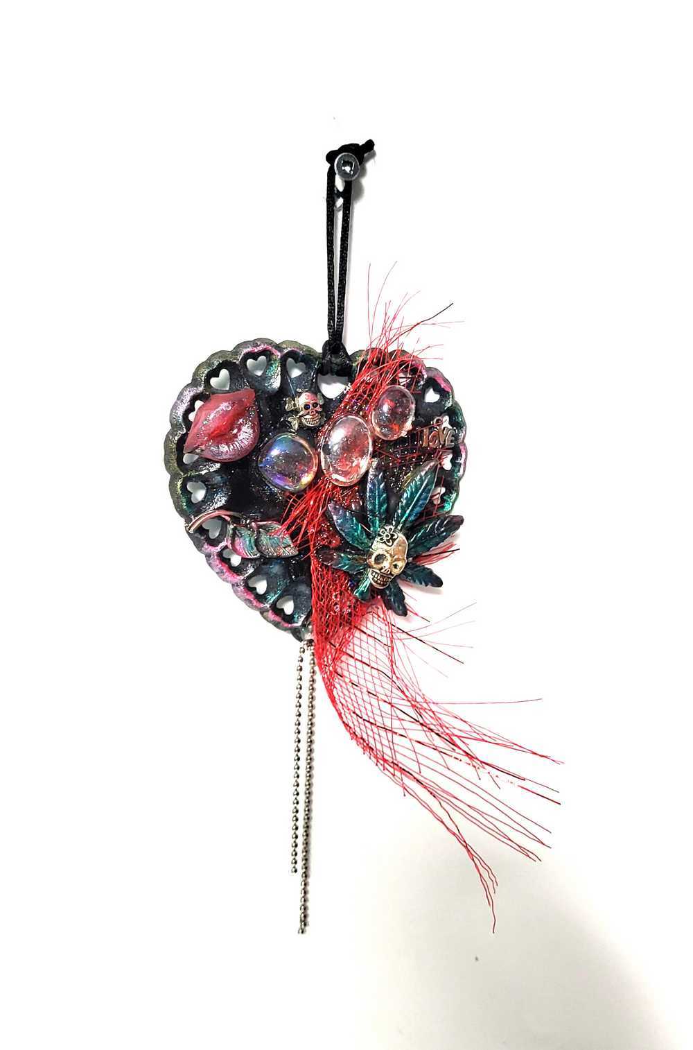 Skull Hanging Heart Ornament with Pouty Red Lips