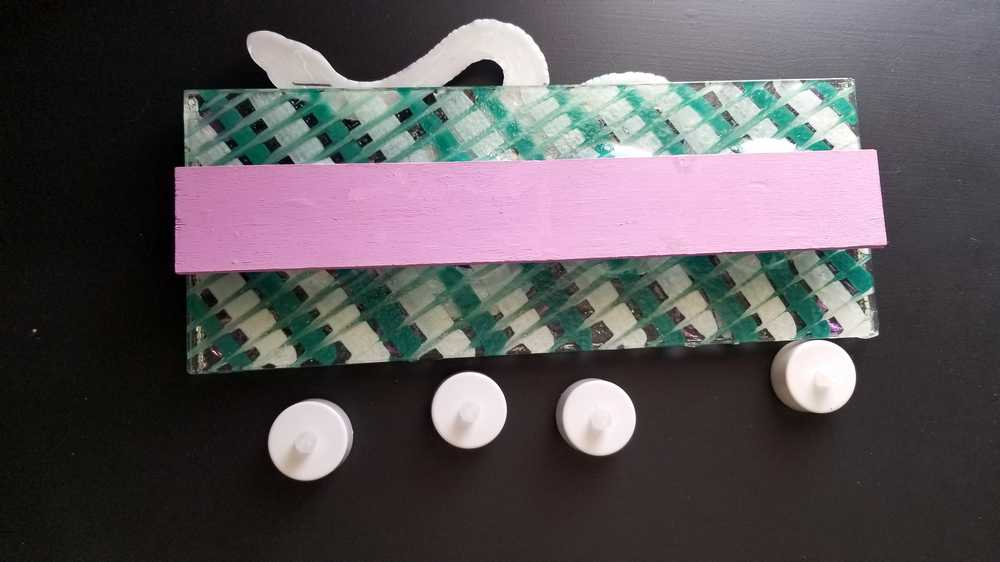 - BEAUTIFULLY Design Glass Candle Holder with Light & Dark Teal Stripes & Squares