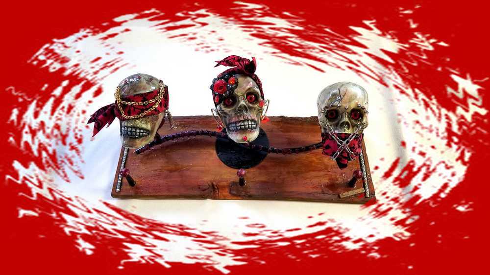 Unique See No Evil, Hear No Evil, Speak No Evil Skull Wall Peg Rack